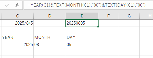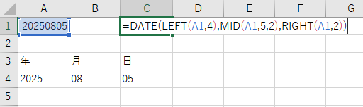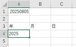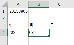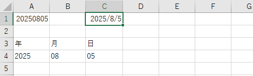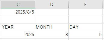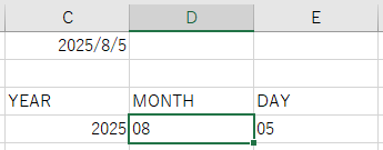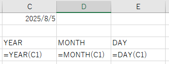 この日付 ”2025/8/5” から、「年」「月」「日」を取り出します。