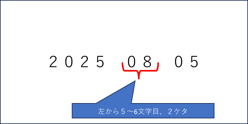 「月」は左から5文字目の2ケタなので、上のような数式です。