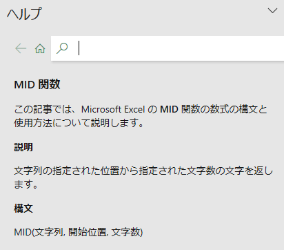 MID関数・・・指定された位置から指定された文字数の文字を返します。