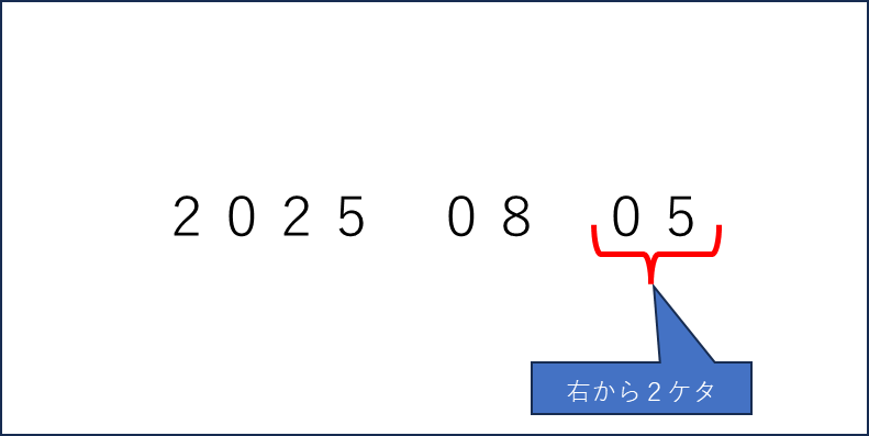 例えば2025年8月5日、これを文字列にすると”20250805”ですね。